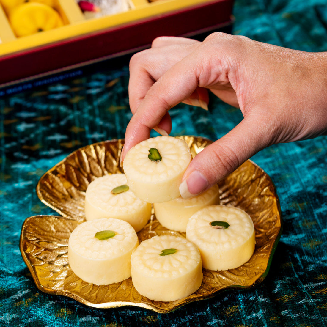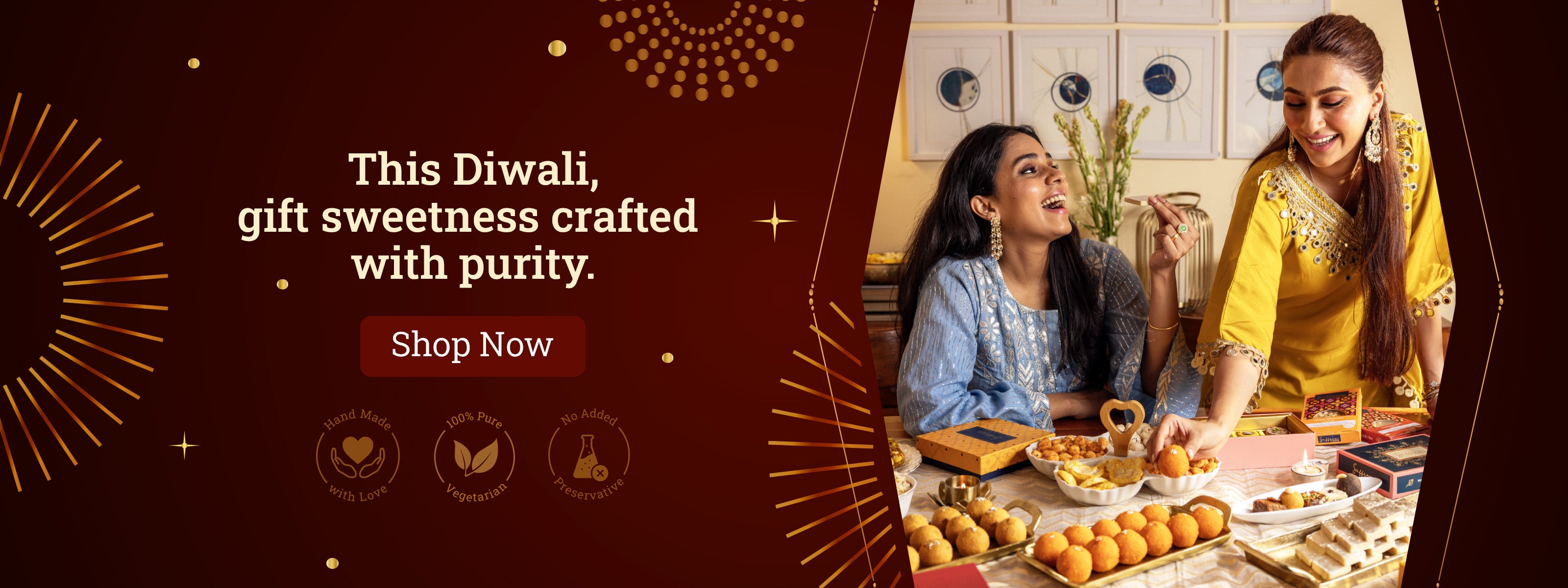 Celebrate the spirit of Diwali with our handcrafted gourmet sweets, a fusion of age-old traditions and contemporary finesse. Each creation is made in small batches using the finest nuts, pure ghee, and premium ingredients, adorned with touches of gold for an indulgence that’s as beautiful as it is delicious. Perfect for gifting or making your own celebrations unforgettable.