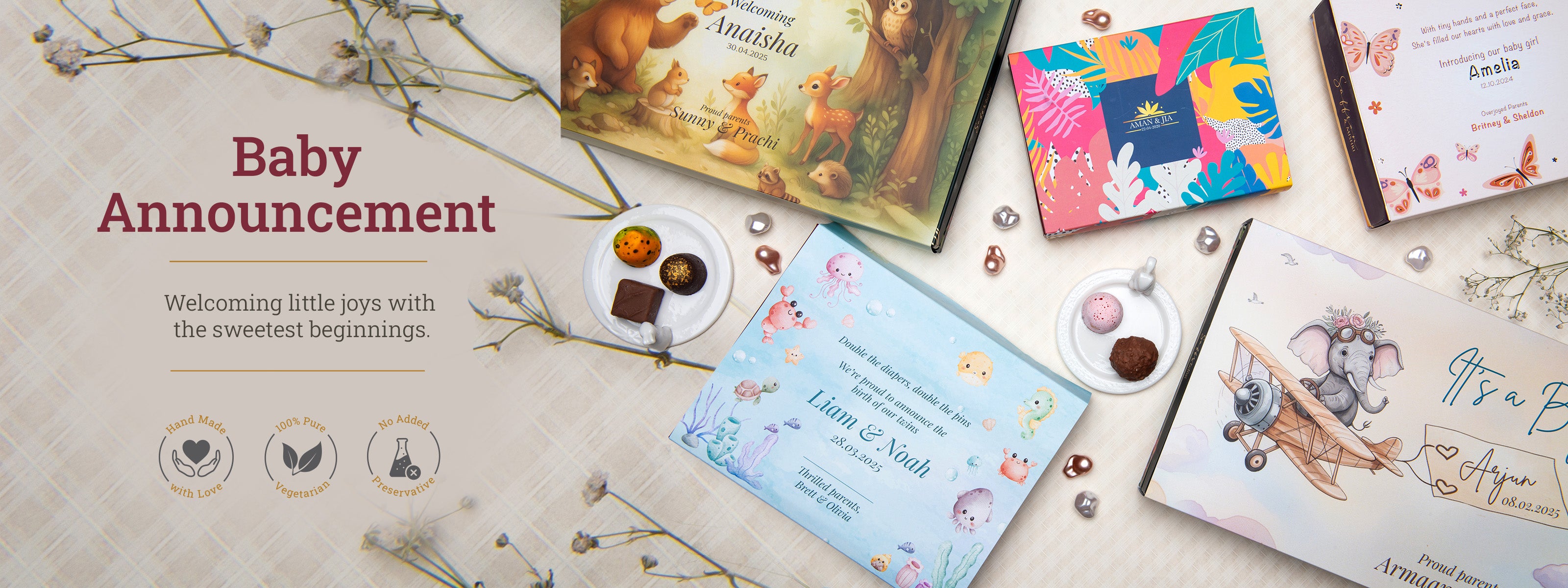 A baby’s arrival is a moment of pure love and wonder. At Saffron & Mishri, we create gifts that capture the tenderness of this occasion, thoughtful, delightful, and crafted to share happiness with your loved ones. Each box is designed to make these first memories sweeter, turning every announcement and shower into a celebration to cherish forever.