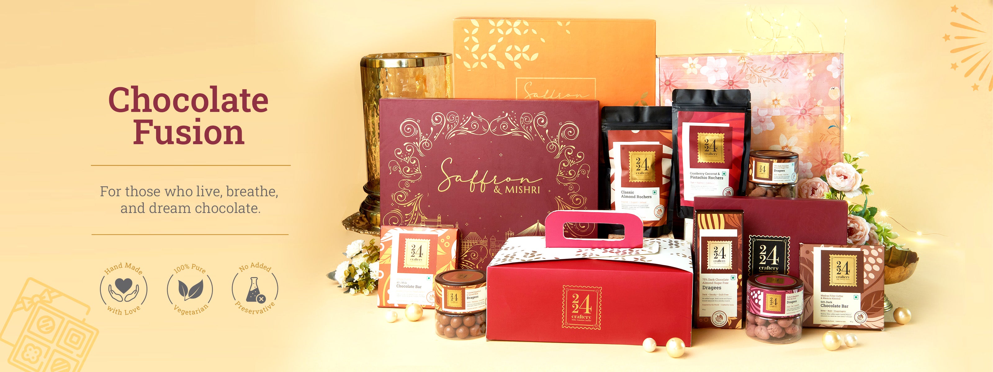 Our Chocolate Fusion Hampers bring together the richness of handcrafted chocolates with the charm of gourmet assortments. From velvety dark bars to creamy milk blends and nut-kissed delights, each hamper is a celebration of flavors designed to please every palate. Thoughtfully curated and beautifully packed, they make the perfect gift for every occasion, turning sweet moments into lasting memories.